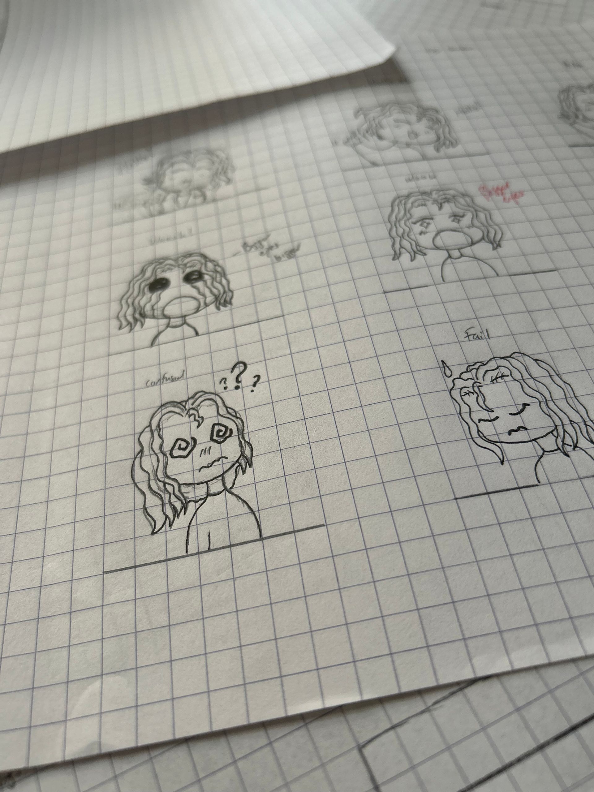 Gamer girl emotes illustrated in a doodle style, inspired by lab note sketches.